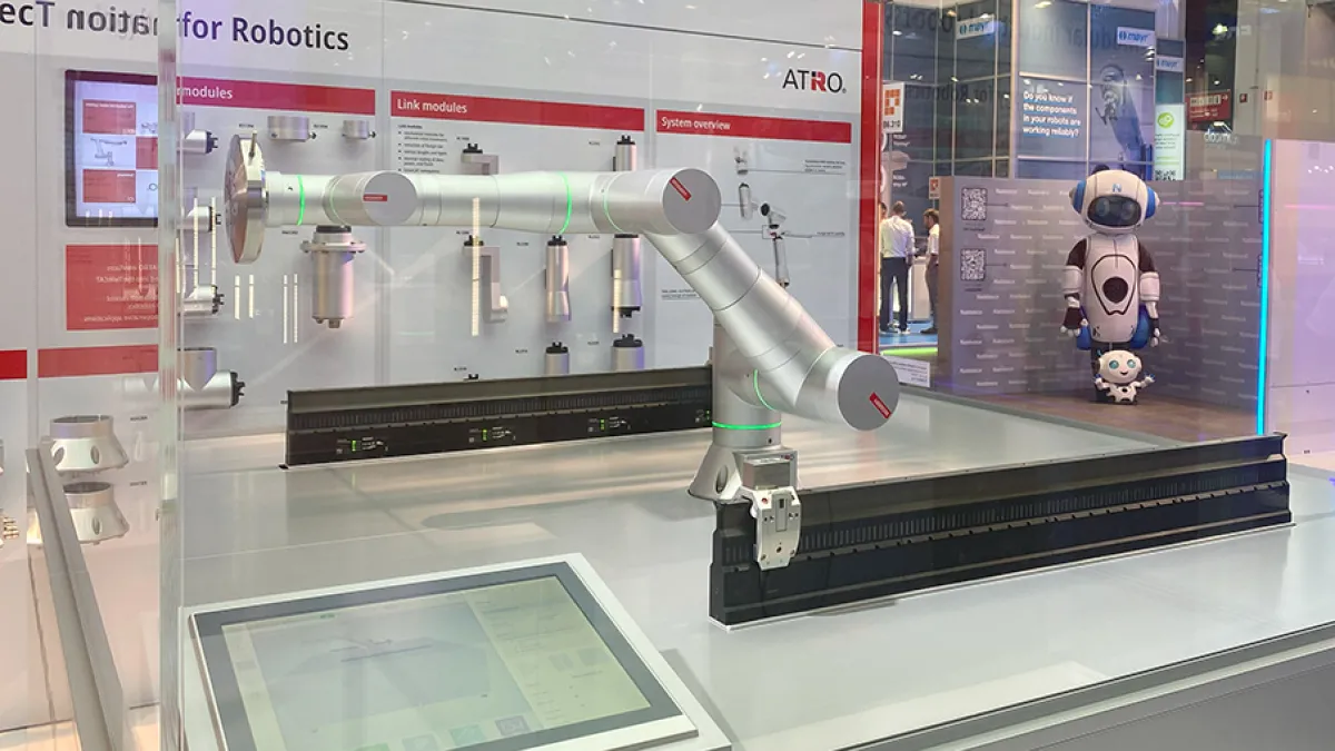 Modulare Robotik für unterschiedliche Anwendungen: Mit Atro stellt Beckhoff ein modulares Robotersystem für die Industrieautomatisierung bereit, das interne Medienführung, endlose Rotation und nahtlose Steuerungsintegration kombiniert. Die Serienlösung ermöglicht flexible Roboterkonzepte auf Basis standardisierter Module. Atro ist die Abkürzung für „Automation Technology for Robotics“. Das System für modulare Robotik erlaubt individuelle Konfigurationen für Montage- und Handhabungstechnik. Standardisierte Motor- und Verbindungsmodule lassen sich in variabler Länge und Ausführung flexibel kombinieren. Die Mechanik kann so gezielt auf unterschiedliche Aufgabenstellungen abgestimmt werden, etwa auf Verpackungsprozesse, Bestückung von Montagelinien oder einfache Sortieraufgaben.